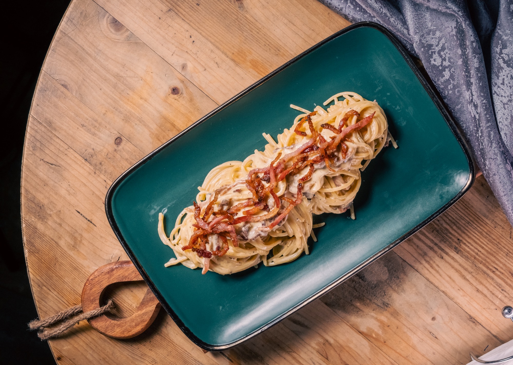 130 gr paste / 50 gr suc de rosii / 30 gr guanciale 40 gr parmesan