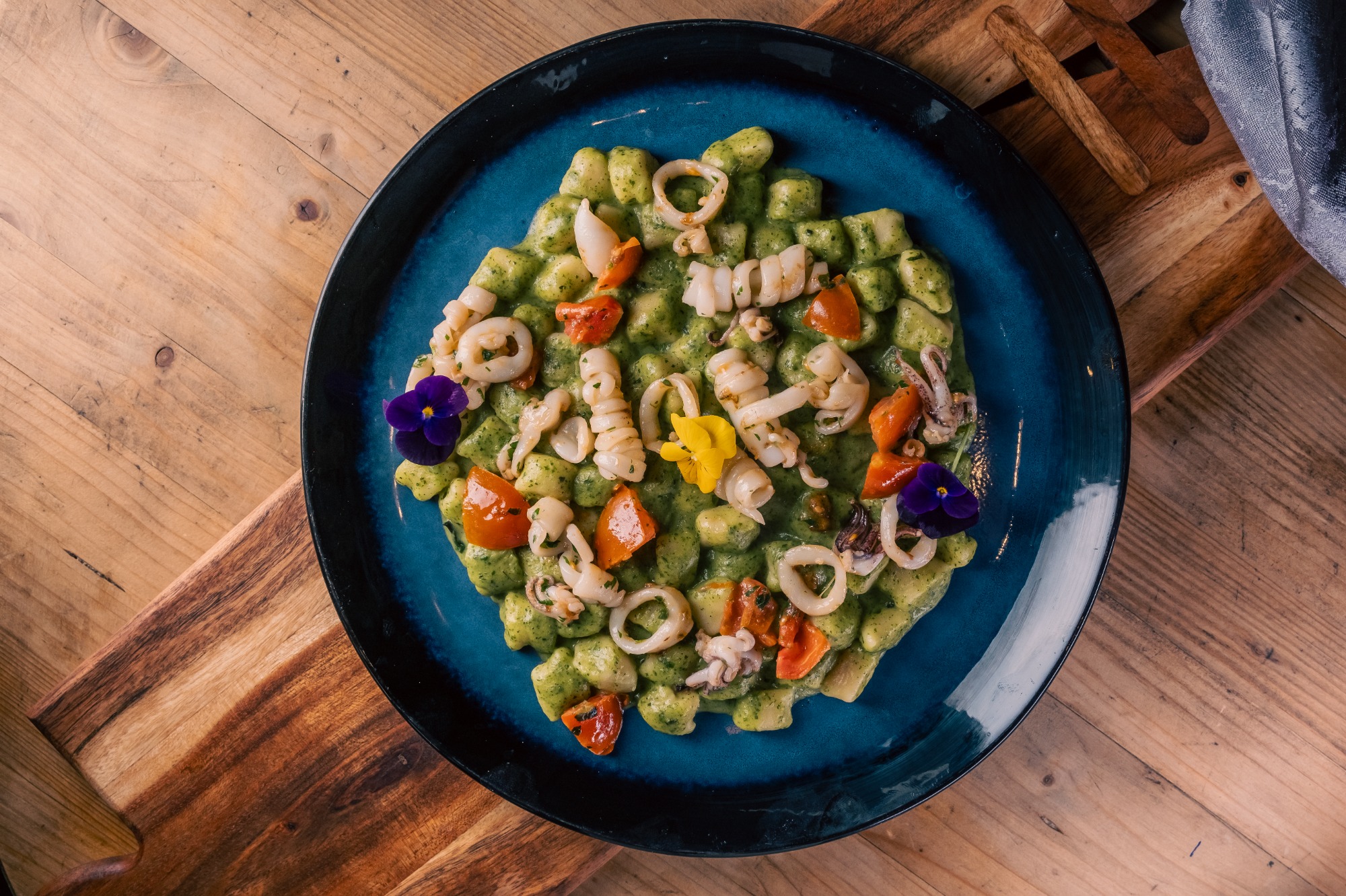 ALUAT - 270g, Prosciutto cotto - 120g, Mozzarella - 100g, Roșii cherry -80g, Dovlecel - 80g, Cascaval afumat - 50g, Nduja